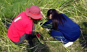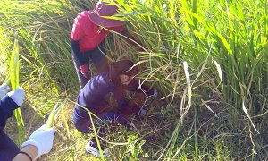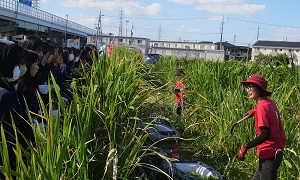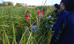 生徒一人一人が大きいマコモダケを収穫しようと背の高いマコモダケの根元を注意深く観察し収穫をしました。害獣であるヌートリアらしき生き物にも遭遇し、楽しく体験学習を行うことができました。