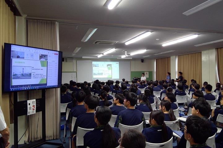 1年生はプレゼンテーション、2年生と3年生は教室からオンラインで実施しました。