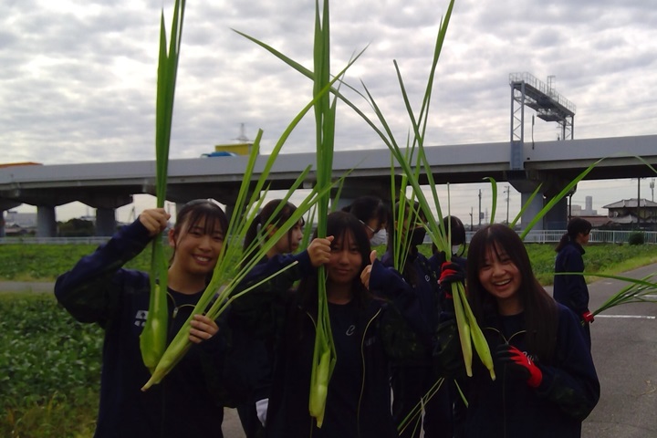 10月の授業では9月の授業内容を踏まえ、まこもたけ農園を訪問しました。知立マコモ研究会の皆様から指導を受け、収穫作業を体験させていただきました。生徒たちは収穫した新鮮なまこもたけをそのまま味わいつつ、課題となるまこもたけ料理をどのように調理するかを考える声も聞かれました。