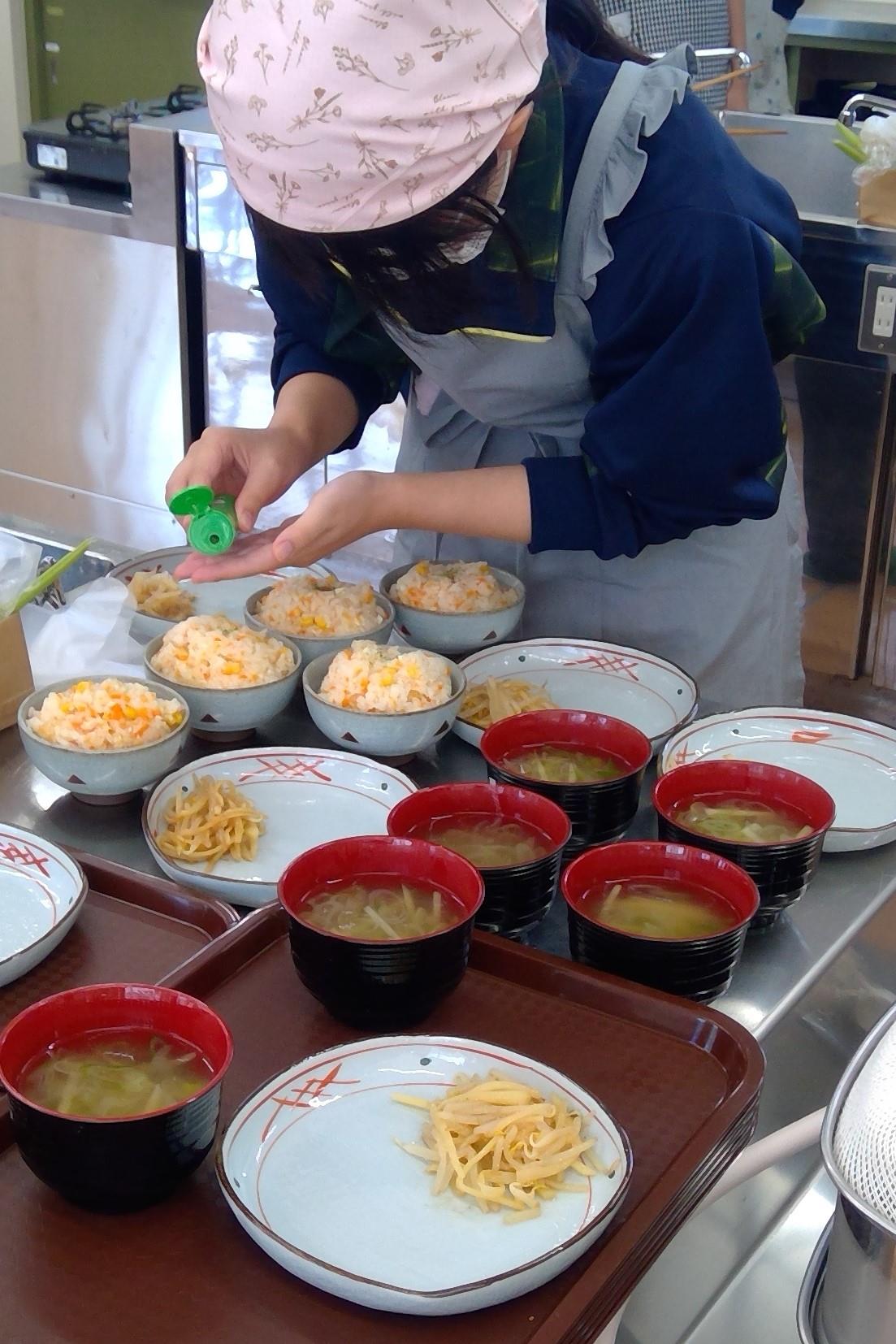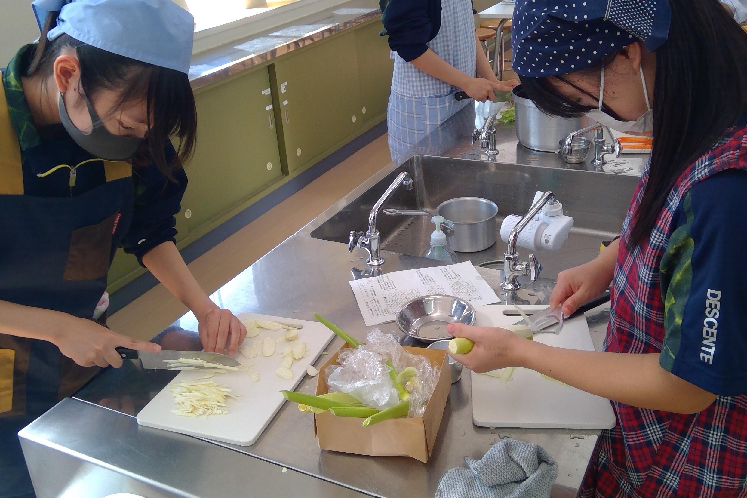 10月17日(木)に、マコモタケ料理に挑戦しました。ピラフ・焼売などメニュー全てにマコモダケを使用し、調理方法を始め味や食感も味わい学ぶことができました。