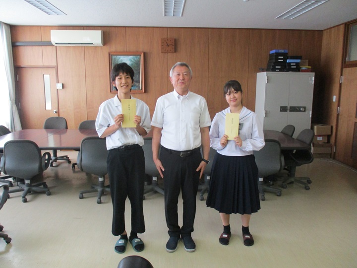 生徒会認証式では、新しく生徒会に選ばれた6名が壇上にあがり認証状を受取り、生徒会長があいさつをしました。