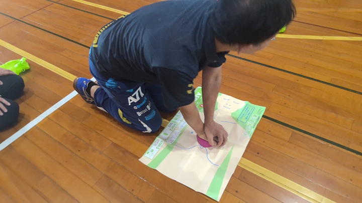 胸骨圧迫などの心肺蘇生法やAEDの使用法などをビデオ視聴や実技を通して学びました。万一の119番への通報時には、スマートフォンのスピーカー通話機能を利用して指示を受けながら対応を行うこともできる、など役に立つ多くの知識・技能を学ぶことができました。