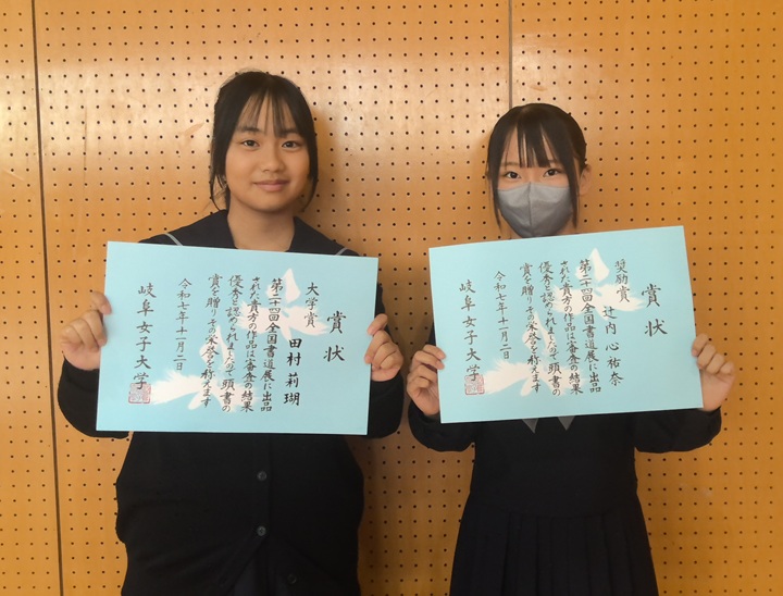 全国書道展 大学賞 田村 莉瑚 奨励賞 辻内 心祐奈 |