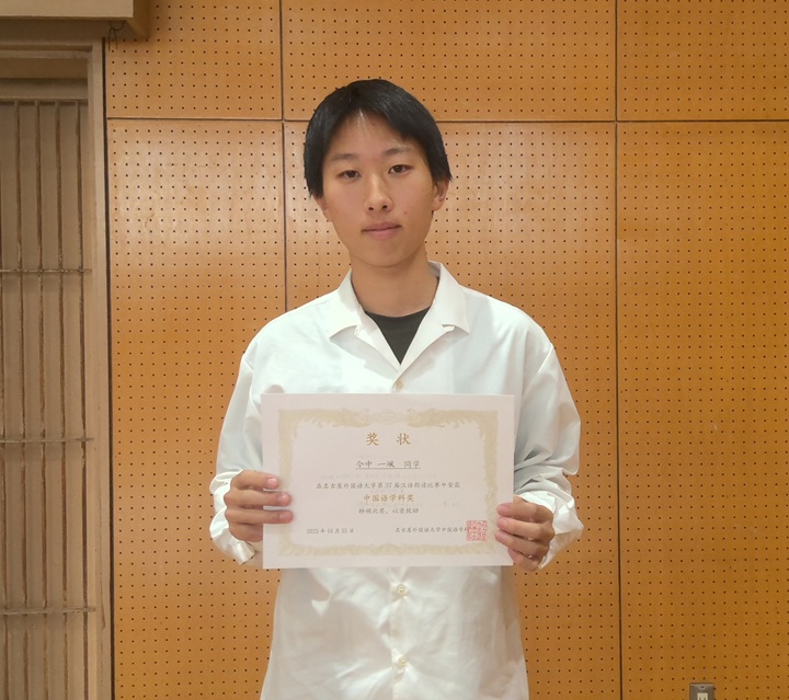 名古屋外国語大学 第37回中国語スピーチコンテスト 中国語学科賞 今中 一颯 |